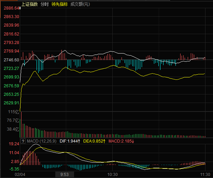 2月4日,滬深兩市低開,隨后快速回升翻紅,在周一收盤附近震蕩,個(gè)股方面跌多漲少,有1225只個(gè)股上漲,下跌股2488只,截至上午收盤,上證綜指報(bào)2752.44點(diǎn),漲幅達(dá)0.21%;深證成指報(bào)9949.95點(diǎn),漲幅達(dá)1.74%;創(chuàng)業(yè)板指報(bào)1862.00點(diǎn),漲幅達(dá)3.69%。