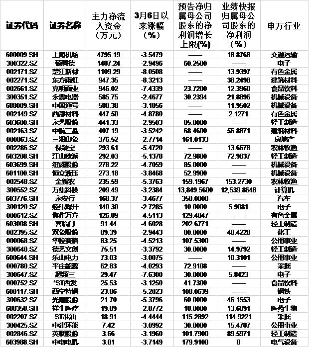 綜合市場(chǎng)分析人士的看法,錯(cuò)殺股的尋找涉及因素較多,而從純數(shù)據(jù)的角度來(lái)看,2019年年度凈利潤(rùn)增長(zhǎng),本次下跌以來(lái)跑輸滬指處于黃金坑底部且周二大單資金凈流入的上市公司股票存在被錯(cuò)殺可能。按照這個(gè)邏輯,《證券日?qǐng)?bào)》記者根據(jù)Choice金融終端相關(guān)數(shù)據(jù)統(tǒng)計(jì),上海機(jī)場(chǎng)(4795.19萬(wàn)元)、碩貝德(1487.24萬(wàn)元)、楚江新材(1109.29萬(wàn)元)等35只個(gè)股符合上述條件。