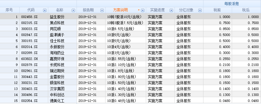 已披露2019年年報(bào)公司分紅信息一覽: