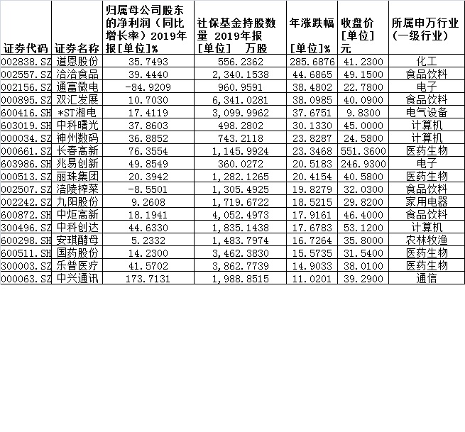 數據是最好的佐證。統(tǒng)計發(fā)現,在社保基金持有的200家公司中,2019年凈利潤實現同比增長的公司達153家,占比為76.5%。