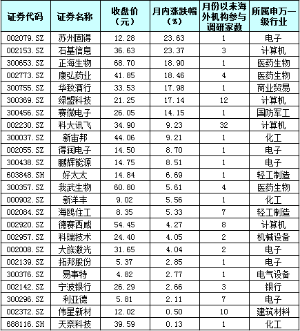 表:月內(nèi)實現(xiàn)上漲的外資調(diào)研股一覽