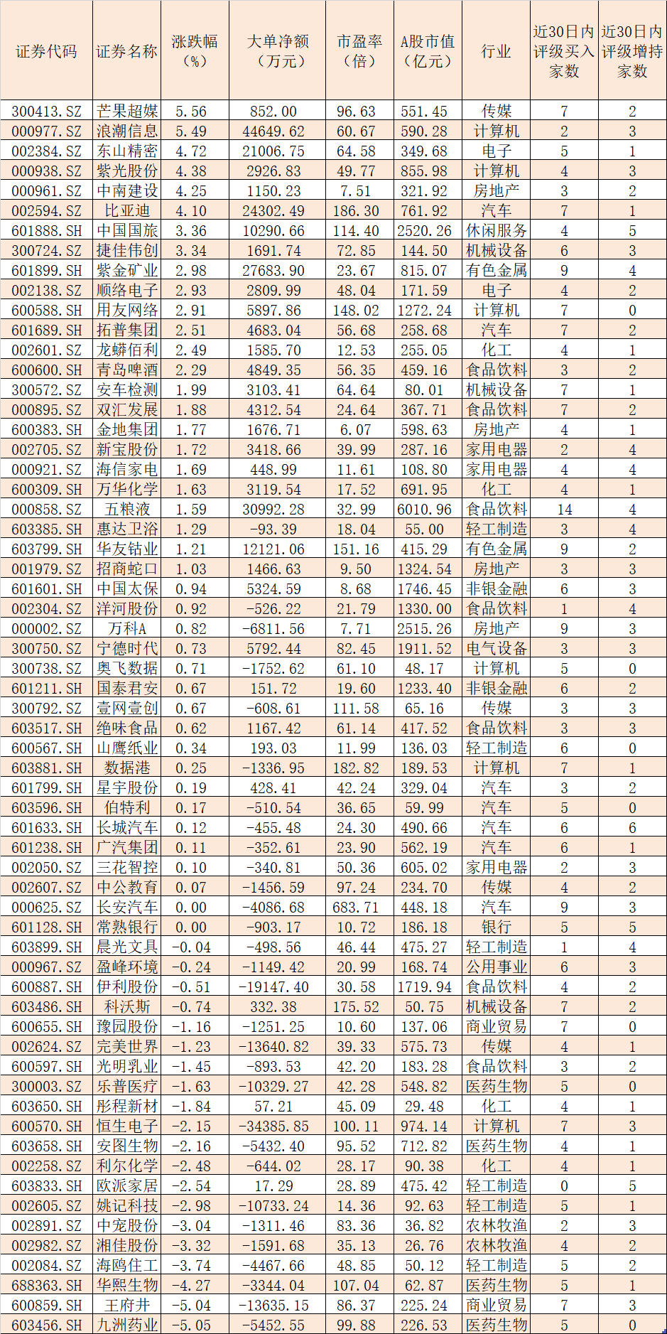 從券商推薦個(gè)股來看,近30日內(nèi),滬深兩市共有62只潛力股受到機(jī)構(gòu)5次及以上聯(lián)袂推薦。其中,五糧液、紫金礦業(yè)、長城汽車、萬科A、長安汽車、華友鈷業(yè)、恒生電子、王府井、常熟銀行等9只個(gè)股均受到機(jī)構(gòu)10次及以上給予“買入”或“增持”等看好評級。