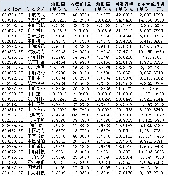 表:7月以來漲幅居前的軍工股情況