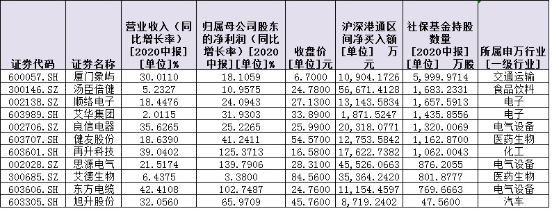 靚麗的業(yè)績無疑會受到機構的青睞。秉承長期投資、價值投資理念的社?;鸪謧}一直以來備受各方關注。在上述116家業(yè)績雙增長的公司中,截至今年上半年,包括順絡電子、湯臣倍健、利爾化學、廈門象嶼等在內的29家公司的前十大流通股股東名單中均有社?;瓞F(xiàn)身,合計持股數(shù)量達25448.9萬股。