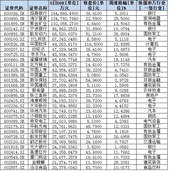 統(tǒng)計(jì)發(fā)現(xiàn),本周,有144只MSCI概念股呈現(xiàn)大單資金凈流入,其中,招商銀行、海爾智家、紫金礦業(yè)等3只概念股累計(jì)資金凈流入均超10億元,分別為16.5億元、13.5億元和10.2億元。另外,有339只MSCI概念股呈現(xiàn)大單資金凈流出。其中,資金凈流出超10億元的個(gè)股達(dá)29只,復(fù)星醫(yī)藥和財(cái)通證券期間資金凈流出金額居前,分別為66.3億元和40.4億元。