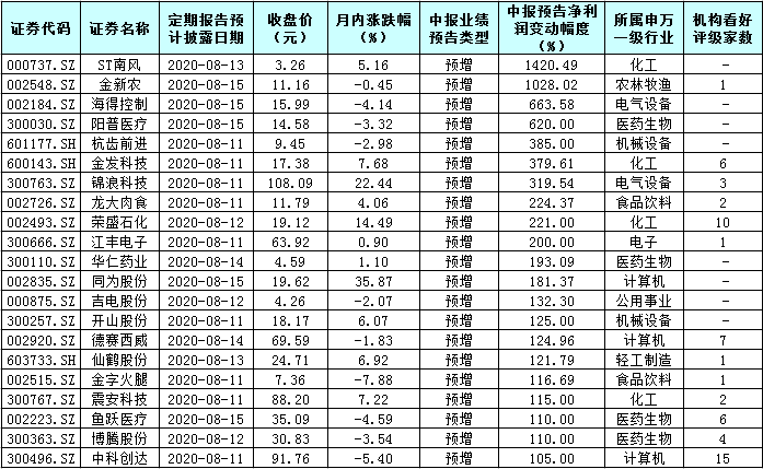 表:21只中報(bào)業(yè)績有望翻番股一覽