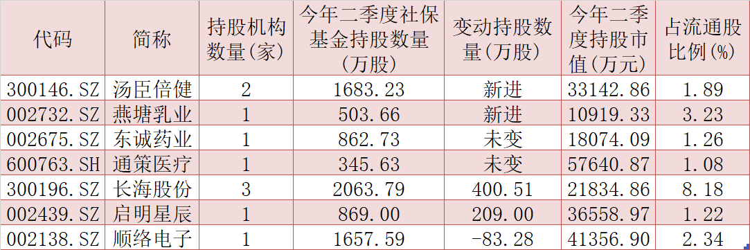 可以看到,以社?;馂榇淼拈L線資金提前布局機構(gòu)調(diào)研品種。統(tǒng)計顯示,上述29只個股中,截至今年二季度末,共有7只個股被社?;鸪謧}。具體來看,湯臣倍健、燕塘乳業(yè)等2只個股成為今年二季度社保基金新進品種,持股數(shù)量分別為1683.23萬股、503.66萬股;并對長海股份、啟明星辰等2只個股進行繼續(xù)加倉操作,社?;鹪龀謹?shù)量分別為400.51萬股、209萬股。對照來看,八月首周(8月3日至8月7日),上述7只個股中,共有5只個股期間股價實現(xiàn)上漲且跑贏大盤(滬指同期上漲1.33%),僅有湯臣倍健、順絡(luò)電子兩只股票期間股價下跌。