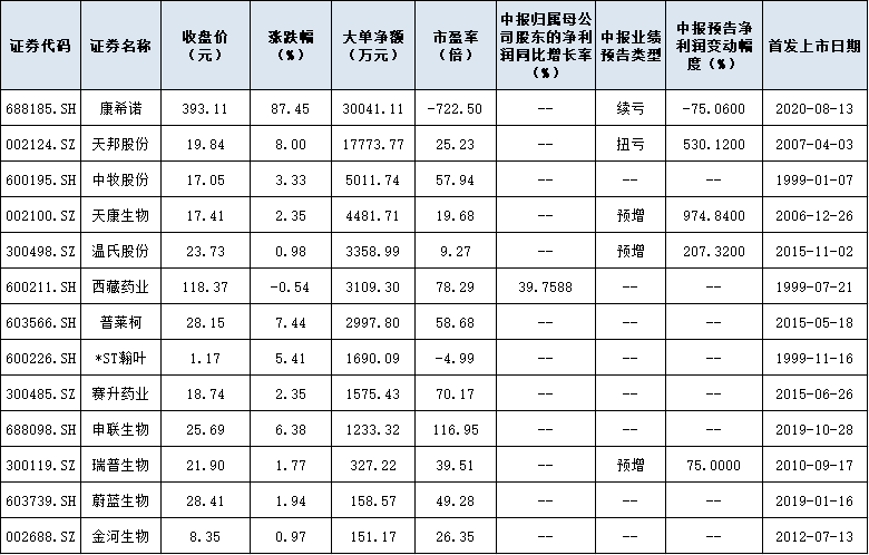 可以看到,仍有部分大單資金對疫苗概念股情有獨(dú)鐘。經(jīng)過持續(xù)回落釋放調(diào)整壓力后,數(shù)據(jù)顯示,8月13日,共有13只疫苗股呈現(xiàn)大單資金凈流入,合計(jì)大單資金凈流入7.19億元,天邦生物、中牧股份、天康生物、西藏藥業(yè)等個股均位列其中。
