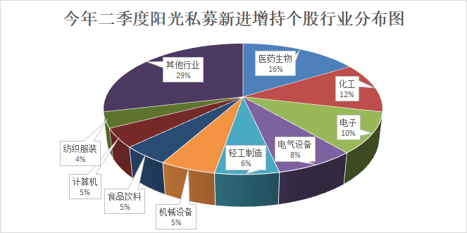 記者進一步統(tǒng)計發(fā)現(xiàn),有129只個股成為今年二季度陽光私募新進增持的重點品種,主要扎堆醫(yī)藥生物、化工、電子、電氣設備等四行業(yè),涉及個股數(shù)量分別為21只、16只、13只和10只。