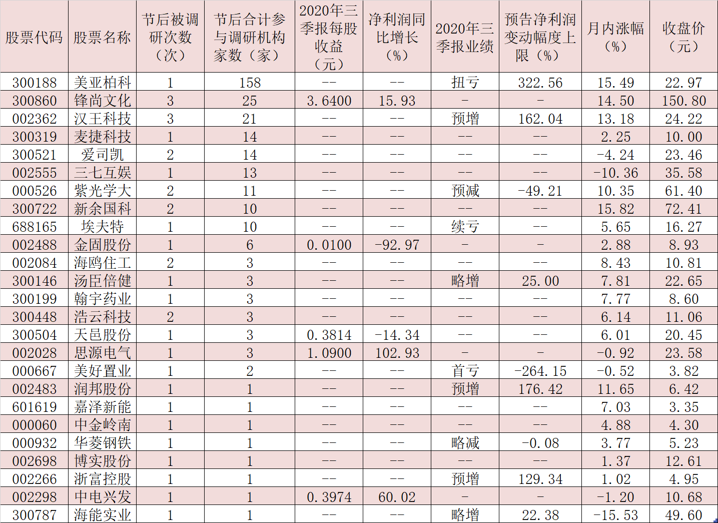 表:節(jié)后獲得機(jī)構(gòu)調(diào)研的公司一覽