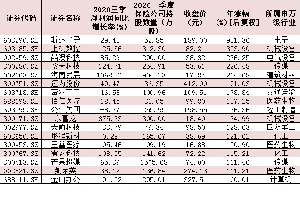 表:今年以來漲幅超100%的險(xiǎn)資新進(jìn)增持股情況: