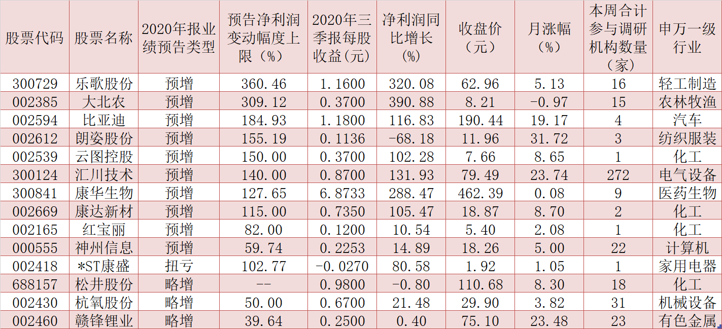 表:本周獲機(jī)構(gòu)調(diào)研且年報(bào)預(yù)喜的個(gè)股一覽