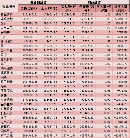 六、截至12月8日申萬一級(jí)行業(yè)兩融交易情況