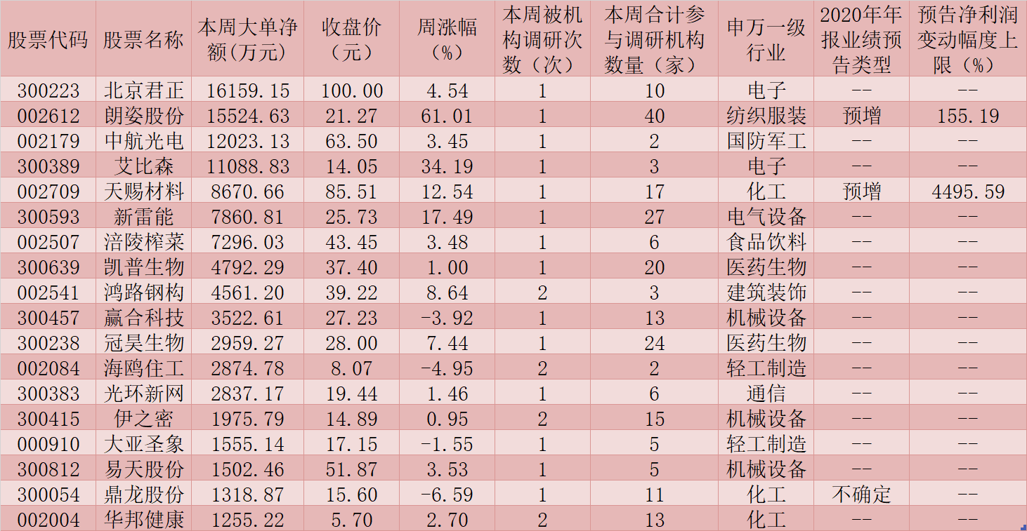 表:本周獲超千萬元大單資金搶籌的機構調研股