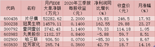 隨著化妝品行業(yè)景氣度持續(xù)上升,近期做多資金也紛紛加倉相關品種。統計顯示,上述20只個股中,有6只個股12月份以來呈現大單資金凈流入態(tài)勢,合計吸金7.29億元。片仔癀、冠昊生物、壹網壹創(chuàng)、丸美股份等4只個股月內均受到1000萬元以上大單資金青睞,哈三聯、拉芳家化等2只個股期間也實現大單資金凈流入,后市表現值得期待。
