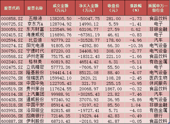 四、周二(12月29日)滬、深股通前十大成交活躍股交易情況