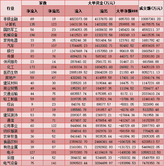 二、周四(12月31日)申萬一級行業(yè)大單資金流向