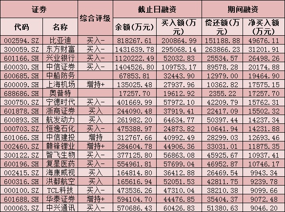 七、12月31日融資凈買入股TOP20