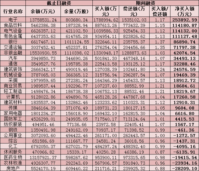 六、截至1月5日申萬(wàn)級(jí)一級(jí)行業(yè)兩融交易情況