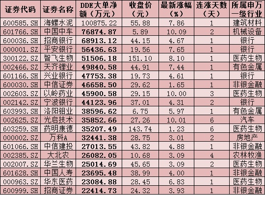 一、周三(1月6日)DDE大單資金凈買(mǎi)入TOP20