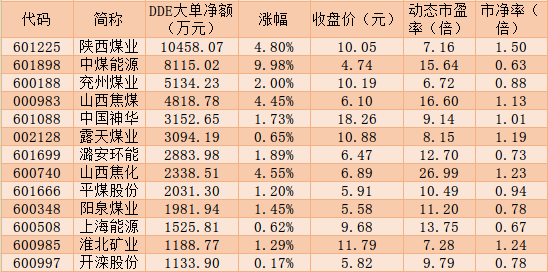 可以看到,隨著市場風(fēng)險(xiǎn)偏好逐步回升,具有低估值的煤炭板塊吸引了市場資金的目光。《證券日報(bào)》記者根據(jù)同花順數(shù)據(jù)統(tǒng)計(jì)發(fā)現(xiàn),1月7日,煤炭板塊呈現(xiàn)資金凈流入態(tài)勢,合計(jì)吸金2.63億元。陜西煤業(yè)大單資金凈流入居首,達(dá)到10458.07萬元,中煤能源緊隨其后,大單資金凈流入也達(dá)8115.02萬元,兗州煤業(yè)、山西焦煤、中國神華、露天煤業(yè)大單資金凈流入也分別達(dá)到5134.23萬元、4818.78萬元、3152.65萬元、3094.19萬元,潞安環(huán)能、山西焦化、平煤股份、陽泉煤業(yè)、上海能源、淮北礦業(yè)、開灤股份等7只個(gè)股大單資金凈流入也均在1000萬元以上,上述13只個(gè)股合計(jì)大單資金凈流入達(dá)4.79億元。