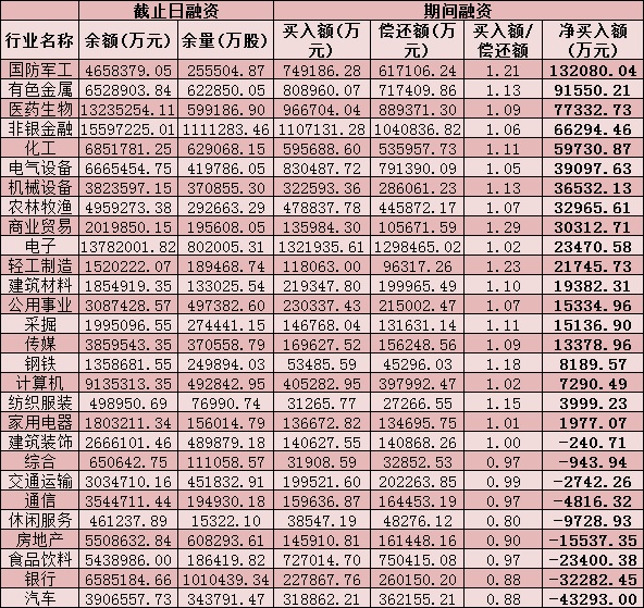 六、截至1月6日申萬(wàn)級(jí)一級(jí)行業(yè)兩融交易情況