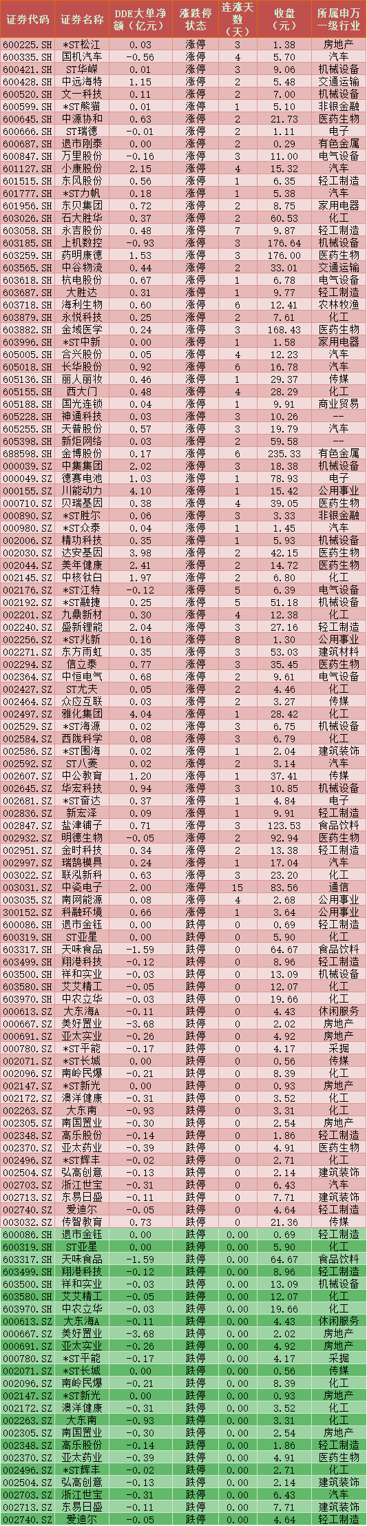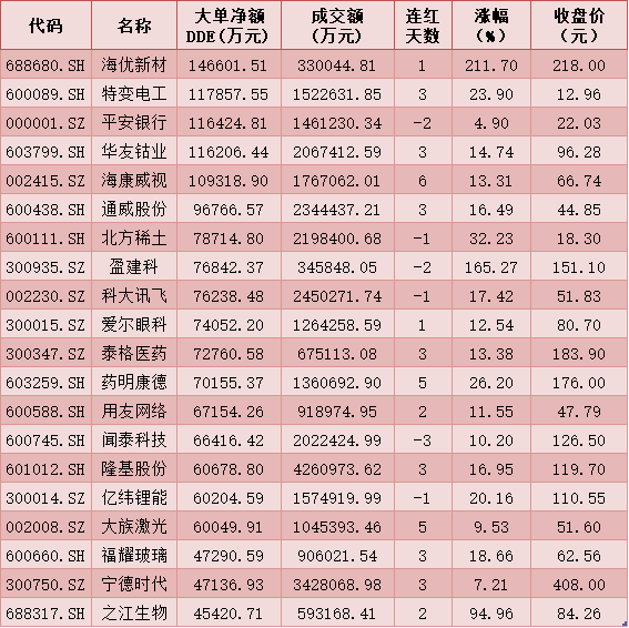 一、周五(1月22日)DDE大單資金凈買入TOP20