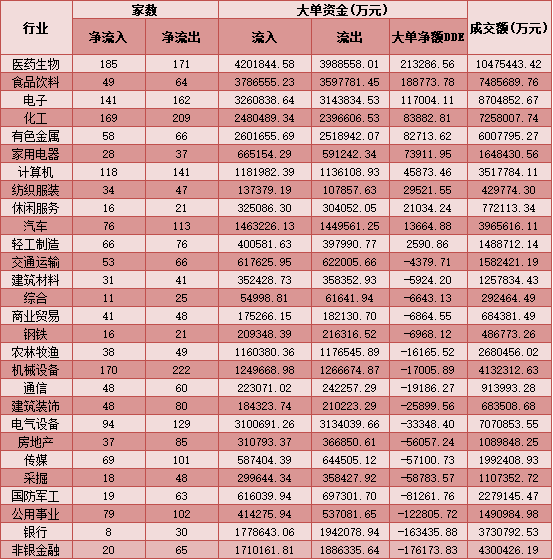 二、2月10日申萬(wàn)一級(jí)行業(yè)大單資金流向