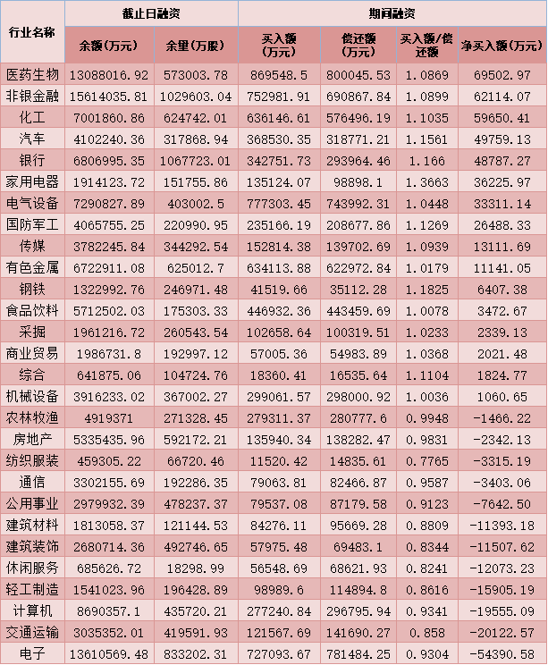 六、2月9日申萬(wàn)一級(jí)行業(yè)兩融交易情況