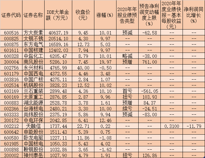 表:3月8日實(shí)現(xiàn)超千萬元大單資金追捧的核電概念股