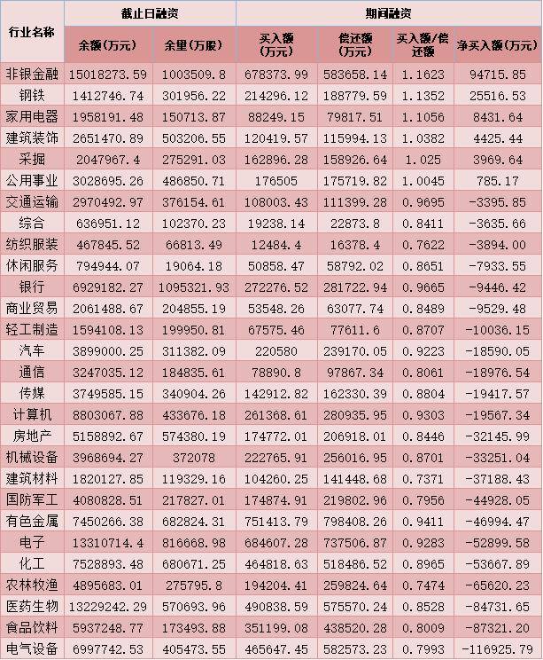 六、3月5日申萬一級行業(yè)兩融交易情況
