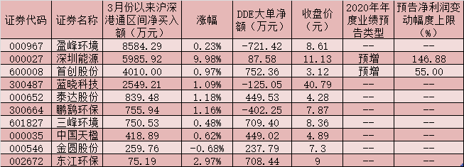 與此同時,作為“聰明錢”的北向資金也已敏銳地捕捉到固廢處理概念股的投資機會。3月份以來,有10只固廢處理概念股獲得北向資金凈買入,期間合計凈買入2.42億元。盈峰環(huán)境、深圳能源、首創(chuàng)股份、藍曉科技等4只概念股最受追捧,期間累計北上資金凈買入額均在千萬元,泰達股份、鵬鷂環(huán)保、三峰環(huán)境、中國天楹、金圓股份、東江環(huán)保等6只概念股期間也受到北上資金的青睞,后市表現(xiàn)值得期待。
