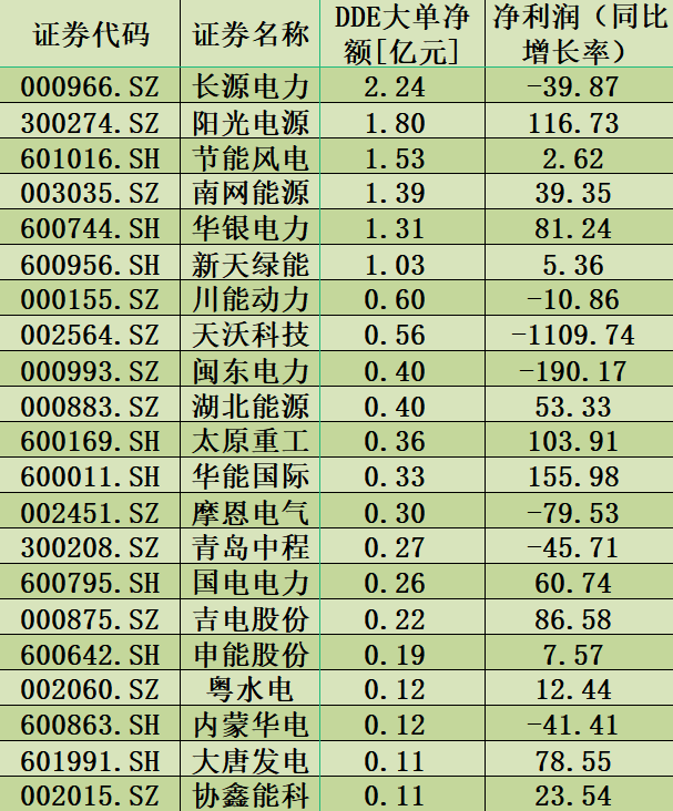 表:5月21日風(fēng)電板塊大單資金凈流入額過1000萬元股一覽