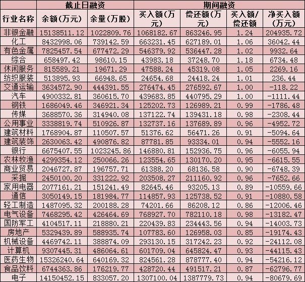 六、截至6月25日申萬一級行業(yè)兩融交易情況
