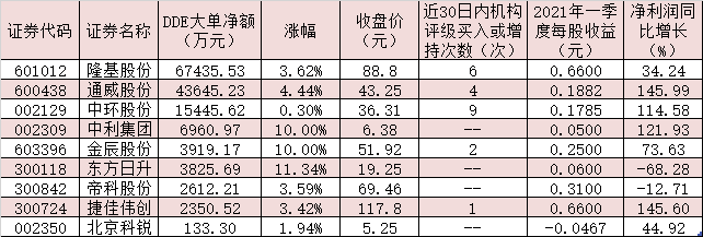 表:6月29日實現(xiàn)大單資金追捧的HIT電池概念股