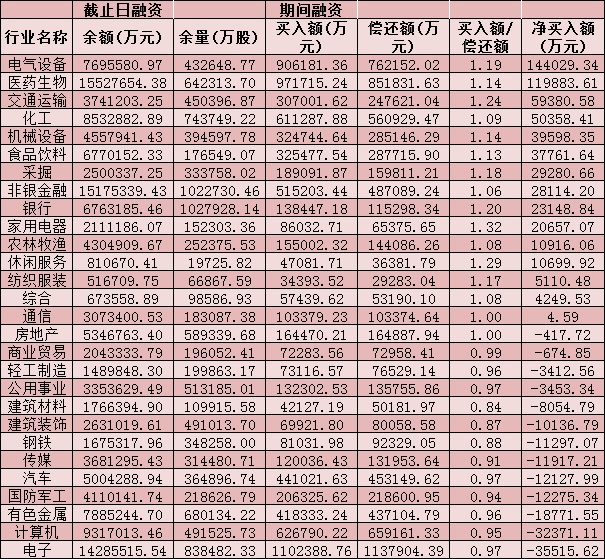五、截至6月29日申萬(wàn)一級(jí)行業(yè)兩融交易情況