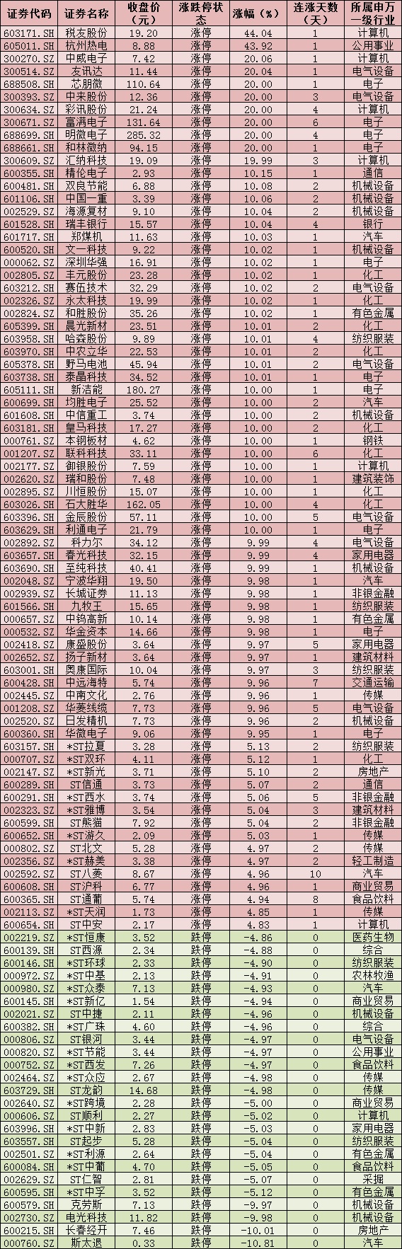 三、周三(6月30日)漲跌停股