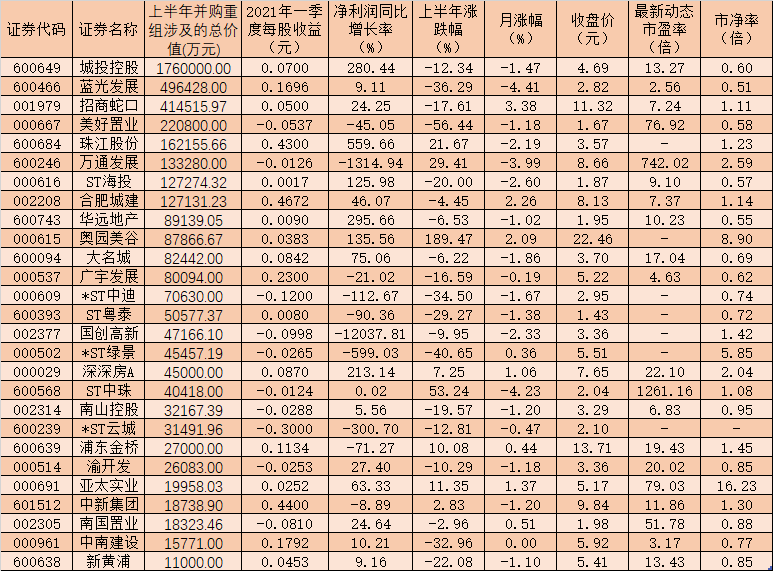 盡管并購重組并沒有對(duì)行業(yè)指數(shù)產(chǎn)生強(qiáng)大的拉升作用,但并購重組對(duì)相關(guān)個(gè)股的走勢(shì)卻有一定的積極影響。統(tǒng)計(jì)發(fā)現(xiàn),2021年上半年,房地產(chǎn)行業(yè)指數(shù)累計(jì)下跌9.01%,跑輸同期上證指數(shù)(期間累計(jì)漲幅3.40%)。在上述已完成并購重組的40只房地產(chǎn)股中,有16只個(gè)股期間股價(jià)跑贏上證指數(shù),占比逾三成。