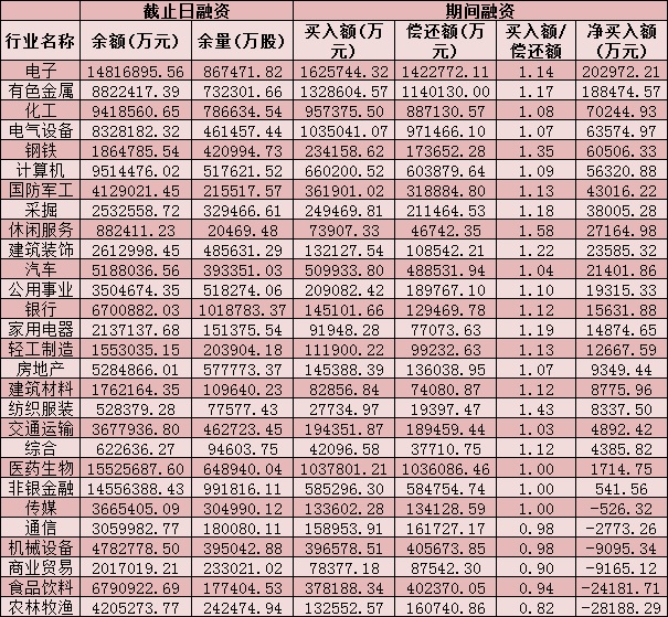 六、截至7月21日申萬(wàn)一級(jí)行業(yè)兩融交易情況
