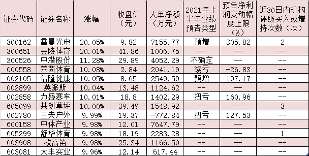 表:8月4日實(shí)現(xiàn)漲停的體育產(chǎn)業(yè)概念股
