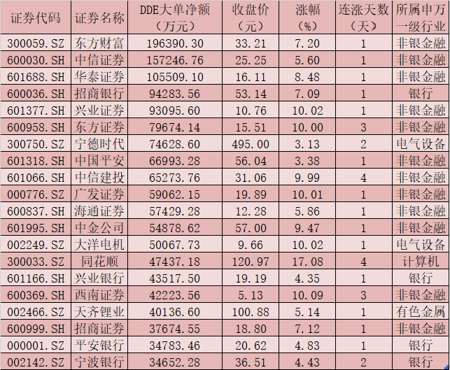 一、周三(8月18日)DDE大單資金凈買(mǎi)入TOP20