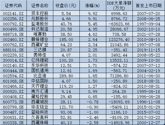 值得一提的是,天齊鋰業(yè)、西藏礦業(yè)、西藏城投等3只個(gè)股股價(jià)盤(pán)中均創(chuàng)出歷史新高。