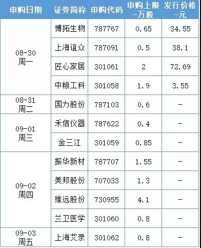 根據(jù)新股發(fā)行初步安排,本周(8月30日-9月3日)A股市場將迎來12只新股申購。其中,創(chuàng)業(yè)板新股5只,主板新股2只,科創(chuàng)板新股5只。從行業(yè)分布來看,當(dāng)前市場熱門鋰電池、新冠檢測等行業(yè)也有相關(guān)新股可申購。
