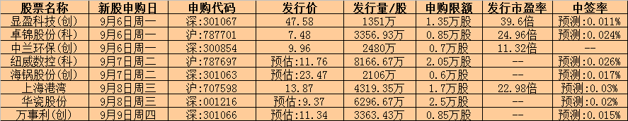 除新股申購?fù)猓€有3只新股9月6日正式上市交易。