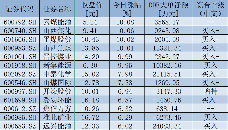 表:9月7日,煤炭概念板塊漲幅超6%個股一覽