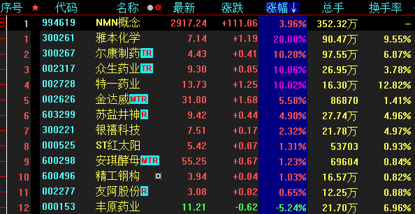 NMN“長壽藥”概念股爆發(fā)