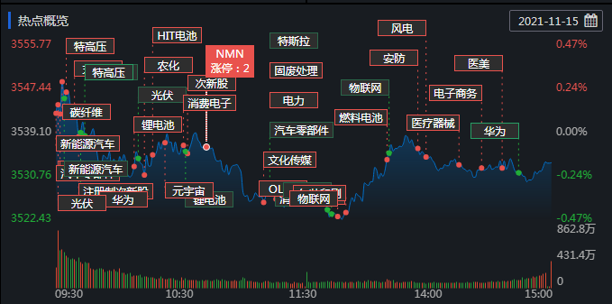 11月15日,長壽藥NMN概念發(fā)力,雅本化學(xué)、眾生藥業(yè)、特一藥業(yè)漲停,爾康制藥、金達(dá)威等個股漲幅也均在5%以上。