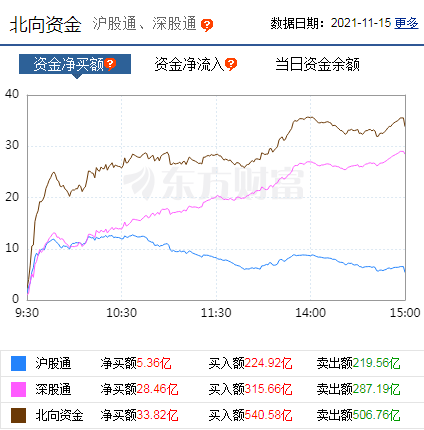 值得注意的是,北向資金今日凈買入33.82億元,其中,滬股通凈買入5.36億元,深股通凈買入28.46億元。