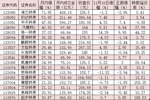 表:11月份以來(lái)漲幅超20%的可轉(zhuǎn)債一覽
