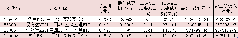4只MSCI中國A50ETF上市8天資金凈流入逾70億元